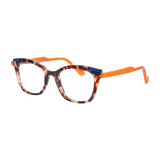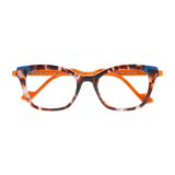 Face à Face Glimps 3 is a bold, angular design with a sculpted brow and softly tapered lower rim that flatters the eyes. Its layered acetate construction adds playful dimension and modern architectural edge to this statement frame.